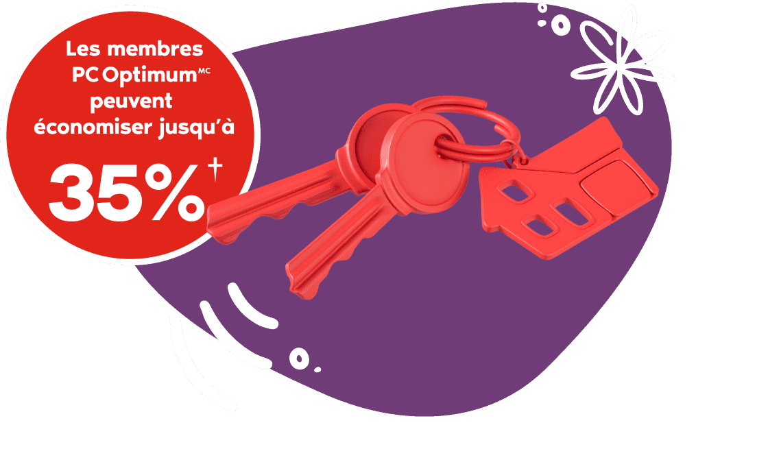 Vous pouvez économiser jusqu’à 20 % sur votre police d’assurance de locataire, de propriétaire ou de copropriétaires si vous êtes admissible au rabais pour absence de sinistre et au rabais d’affinité pour les membres PC OptimumMC.